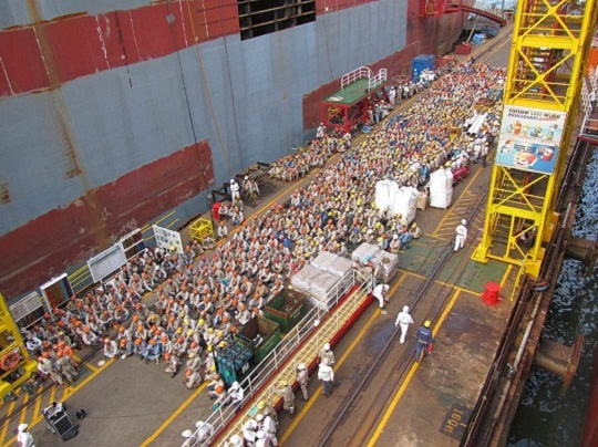 Daily Toolbox meeting of TGT FPSO conversion project in Keppel Shipyard, Singapore