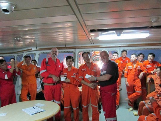 HLHVJOC Management visit the supply vessel Sea Cherokee and delivered safety awards for her outstanding performance while serving HLHVJOC Operations in TGT and CNV Fields.