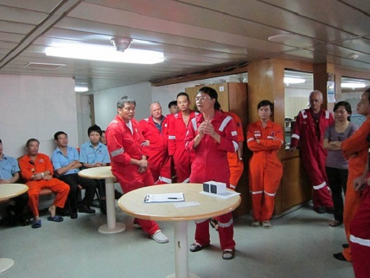 Safety induction for the crew working on PVD rig – Maersk Convincer before the drilling campaign at TGD Discovery.
